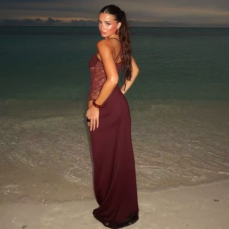 Lace-Panel Halter-Strap Sexy Dress