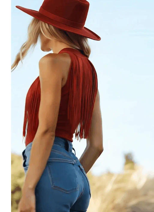 Red Tassel Halter Sleeveless Womens Tank Top